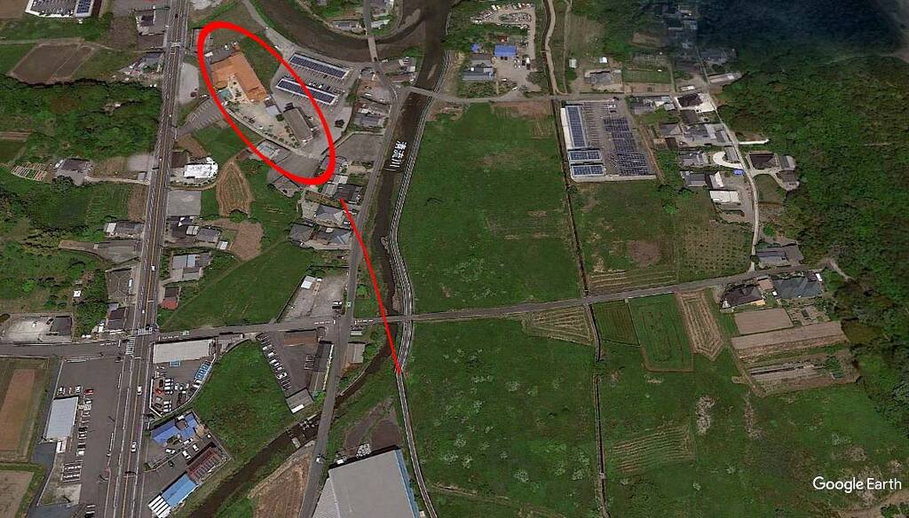 やはりそうですよね。採算ベースから考えて、国道付近に駅を計画するのは当然であり、延伸後にわざわざルート変更するのは無駄ですから。ただ、田深には築堤と思しき痕跡が2012年まで残ってましたので、画像をお送りします。
