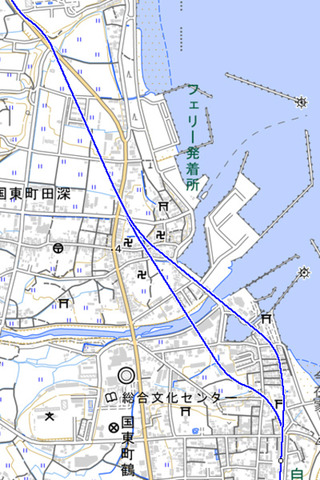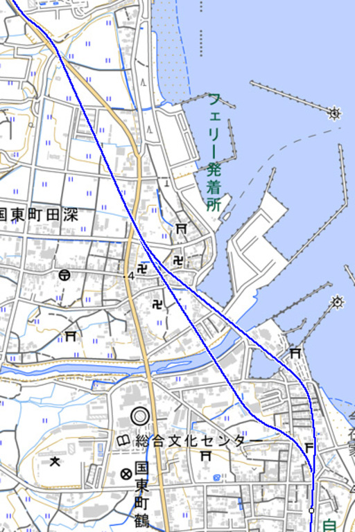 小原付近の未開業区間ですが、丸で囲んだ様に、保育施設の建物が斜めに建てられています。ラインの様に路線が伸びていて、延伸時には国東駅が警察署辺りに移転する計画だったのかもと勝手に想像しています。勿論痕跡も無く、あくまでも個人的な想像で恐縮です。