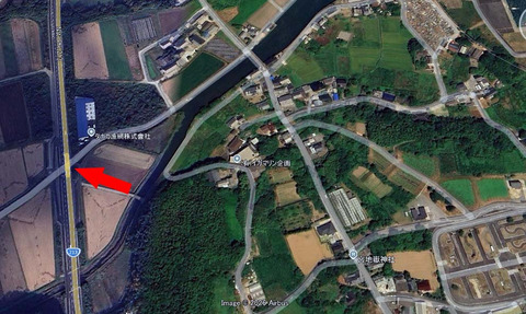 矢印の位置です。現在ではインターチェンジの様になっていますので、現国道からは楽にアクセスできる筈です。