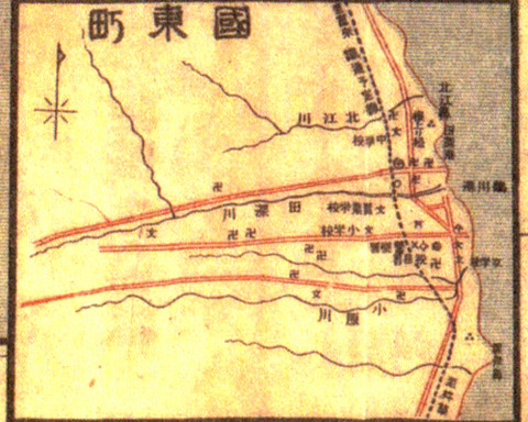 次が国東の文化財探訪に掲載された地図。かなり正確に見えますが最新の地図には重ならず、精度はさほど高くありません。