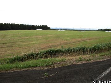 ここで左へと別れた忠類線は、大半の殖民軌道同様まずは牧草地(写真C)の中へ姿を隠す。殖民区画内を斜めに横切ったのち、西三号を越えると右に曲がり、その西奥を並走し始める。