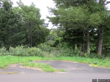 川の対岸には道路転化後の名残として作業道(写真H)が続くも、一部を除き、あまり活用されていないようだ。これを過ぎると再び道路(写真I)に接近し、その東脇を併走する。北上を続ける路線は、やがて古多糠地区の基線に突き当たる。この手前が終点の古多糠(写真J)で、跡地は特に利用される事も無く空き地として放置されたままだ。