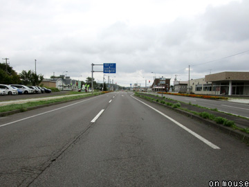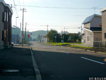 ここまでが早来線、以降は幌内線として区別される。駅を出ると左急カーブで大きく向きを変えるが、今では住宅が建ち並び、正確なルートの把握は諦めざるを得ない。カーブ終了地点から道道235号線(写真Q)の東側を併走し始める。専用軌道区間だが、廃止後は道路拡幅に利用されているように見える。