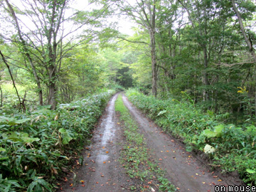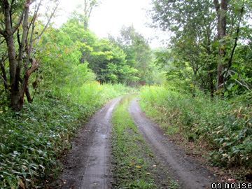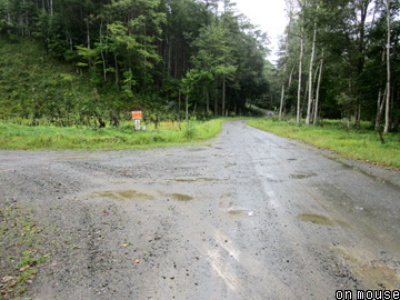 | なおレールそのものは更に続き、駅東方の十字路南にあった土場を経由したのち、シュルク沢川に沿って奥地(写真Z)まで延びていたようだ。昭和3年の地形図に路線の記載があるも、その精度は信頼性に欠け、正確なルートの調査は断念した。 |