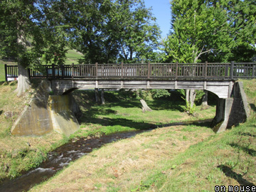 その丘陵には「ひがしもこと芝桜公園」が開設され、園内の遊歩道に軌道時代の藻琴川橋梁(写真X)が転用されている。橋桁は換装されたと考えるが、橋台は特に手を加えた様子は見られない。藻琴駅出発以来、ようやく見つけた遺構で、できれば何らかの説明看板があればと願う。