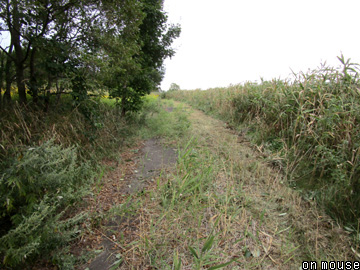 駅を出ると一旦、二車線の街路(写真N)に転換され、さらに作業道状の小道を経て、雑草地となった上東(写真O)につながる。上記東藻琴の歴史ではこの手前にもう一駅集乳所前があったと記され、下記参考資料1では同一駅だったとの記述もみられる。平面図も残されるが、残念ながら駅名が付されていない。