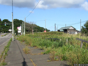 公園の南端で道道に合流し、軌道敷の一部が道路転用された箇所もあるが、緩やかな左カーブののちはその東奥を平行して進む。やがて道道995号線との三差路に至り、その手前が終点の山園(写真Z)となる。平成初期には藪の中に機関庫跡を確認できたようだが、今は牧草地として全ての痕跡が消し去られている。