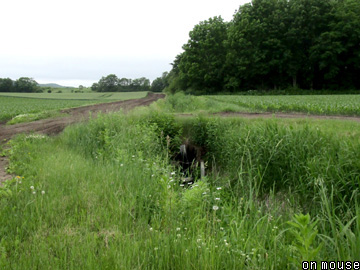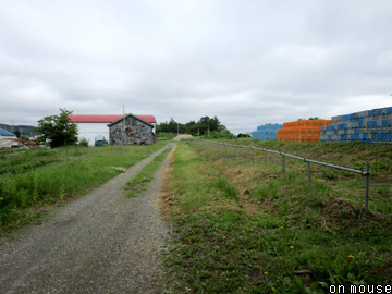 交差後の路盤は水路(写真J)に転換された模様で、殖民軌道では定番の活用法でもある。この水路はやがて道道に接近し、道路北側を併走する。続く三号(写真K)はまったく手掛かりがない。農家に近接していたと考え、点在する中の一軒に的を絞ってみたが、根拠のない直感頼りの推測に過ぎない。
