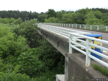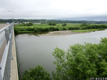 その後、国道245号線の旧道に合流し北側を併走する。当地の主要河川、利別川(写真C)は道路との併用橋で渡っていたようだが、現在は国道もルートを変更し、高島橋も北側に位置を変えている。
