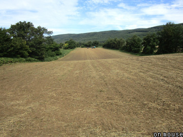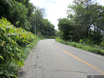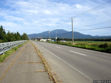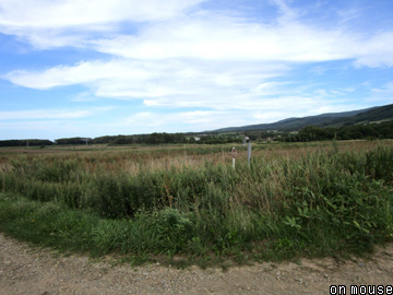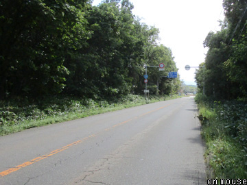 同校の北側に位置したのが島戸狩(写真L)で、沿線では斜里に次ぐ集落と思われるが、駅は併用軌道上でもありそれらしき痕跡は認められない。駅を過ぎて再び国道(写真M)に合流するものの、すぐ右に分離してしまう。一旦、雑木林を抜けたのち、やはり区画整理の済んだ農地内(写真N)に飛び込む。途中に流れる糖真布川は、両岸共樹林帯に囲まれるため近づくことは難しく、橋梁痕の有無は確認できていない。