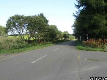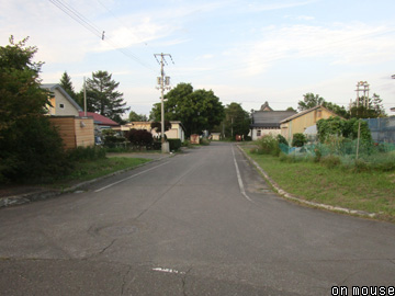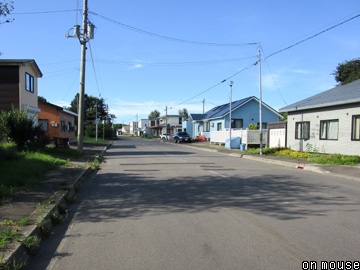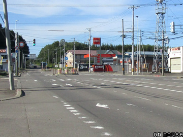 市街を抜けると道道から西に外れ、小さな公園を経て牧草地に飛び込む。この辺りまでは旧根室線の路線を継承し、続く右カーブで同線から分離する。しばらくして西に向かう町道(写真D)に合流し、その南脇を併走する。道路は現在二車線に拡幅され、その大半は軌道跡がベースとなる。