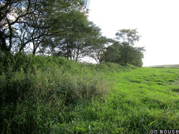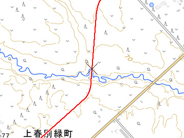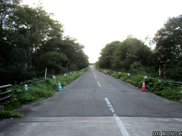 そのまま四十六線を通り過ぎ、再度の左カーブで一旦南に向きを変える。この途中で横切る床丹川(地図N)は牧草地の奥深くに相当するため、近づくことさえ難しい。ただ下記参考資料2は、上記春別川と共に木杭と思われる橋脚の写真を載せ、残痕の存在を伝えている。