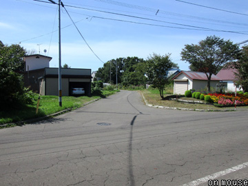 引き続き農地内を抜けた後、路線はやがて西春別市街の住宅地に入り込み、区画内の一部街路(写真U)が軌道跡に一致する。