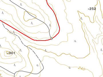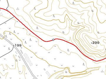 この区間には峠下(地図F)、仁田山(地図G)の各駅と路線短縮時の終点となった10.5km地点(地図H)が含まれ、東寄りの2駅は木材搬出に特化された拠点と考えられる。なお仁田山駅は上記軌道関係資料図と場所がやや異なるが、距離程を優先し判断した。
