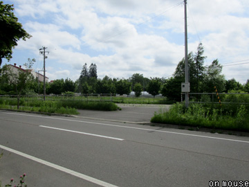 同校内には軌道跡に沿ったと思われる杉林(写真K)が連続する。カーブが終りほぼ真南に向いた地点が農学校前(写真L)で、帯広農業高校の西門付近と一致する。 以前の校名が駅名の元になったと考えられる。