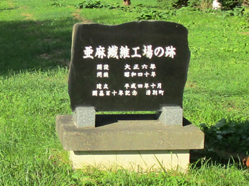 殖民区画の東一線を越えると、左手に亜麻繊維工場の跡と刻まれた石碑(写真D)が目に留まる。当軌道とは直接の関係はなかったようだが、南北の工場を結ぶ二呎の人力軌道が二箇所(写真E・F)で線路を横切っていた。