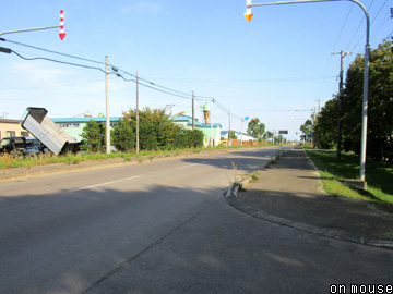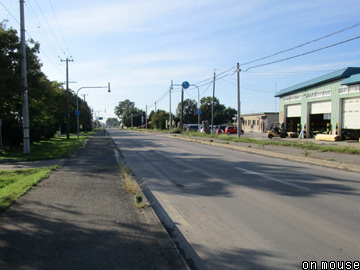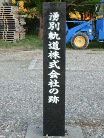 今は無き名寄線の湧別駅東口に始発の湧別(写真A)を構えた湧別軌道。JR側は既に文化センター等に変わり、東側に接する道路が軌道の駅跡に相当しそうだ。道路脇にはその存在を示す石碑(写真B)も設けられている。軌道はそのまま二車線道路として南下し、東二号(写真C)で左に折れる。ここから終点の手前まで、道路南端を全線併用軌道として進む。