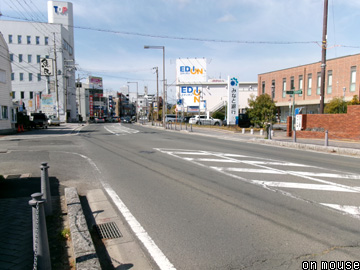 市村(写真AC)は眼科から郵便局に掛けてが駅跡に相当し、道路は構内西縁に沿ってゆるやかに屈曲する。神代(写真AD)は住宅設備会社が目印となり、幅員にも若干の広がりが認められる。