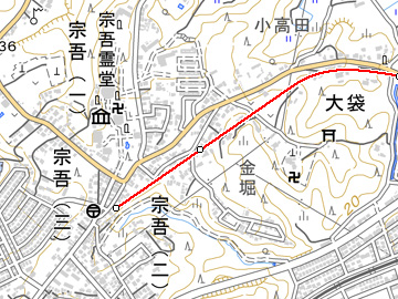 民家の先は藪地に入り込み線路跡は不明となる。これを抜けるとルートに一致する生活道も見受けられ、平面図からは次の路地踏切東側を宗吾霊堂裏(地図V)と読み取ることができる。距離程は2哩74鎖50節(4717m)とされる。