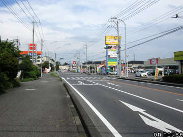 宇都宮市内の西原町から北へ向かう徳次郎線の大半は、野洲人車鉄道によって敷設された。コンビニ東隣の一車線道路(写真AE)がルートに近く、当時の線路跡である可能性は高い。