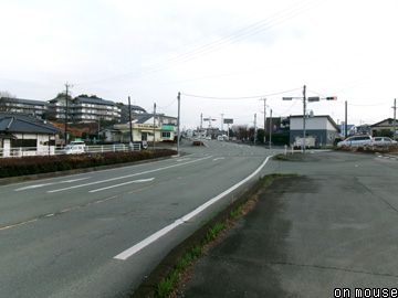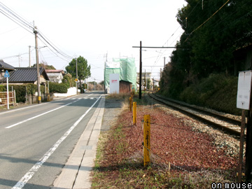 道路はやがて、わが輩通りと呼ばれる県道1号線に突き当り、ここで電化後の新線と合流する。 |