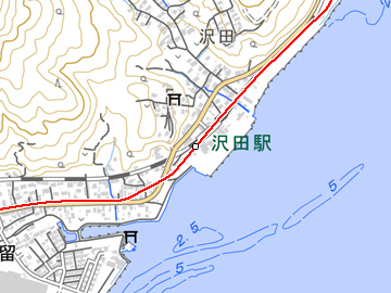 ここから先、ルートの確認はかなり難しくなる。国道と海岸線に挟まれていたことは確かだが、道路側はカーブ緩和や拡幅が実施され、そこに省線が割り込んできたことが大きな障害となる。